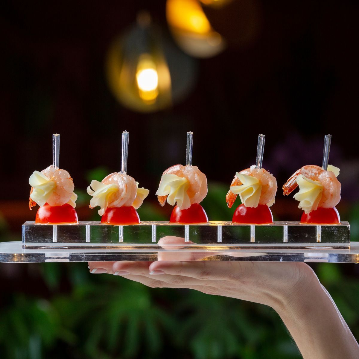 - Modern canapés (salmon blinis, prawn cups)