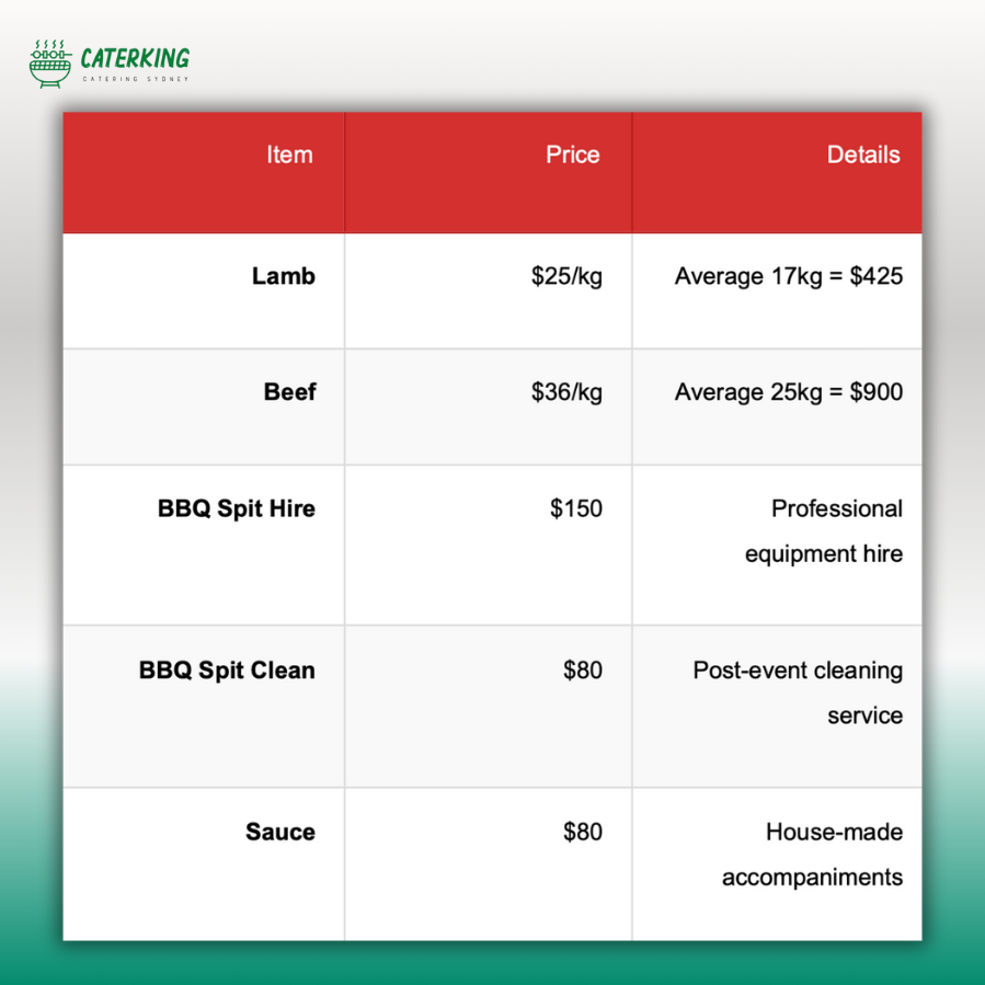 2. How much does spit roast catering Sydney cost per person?